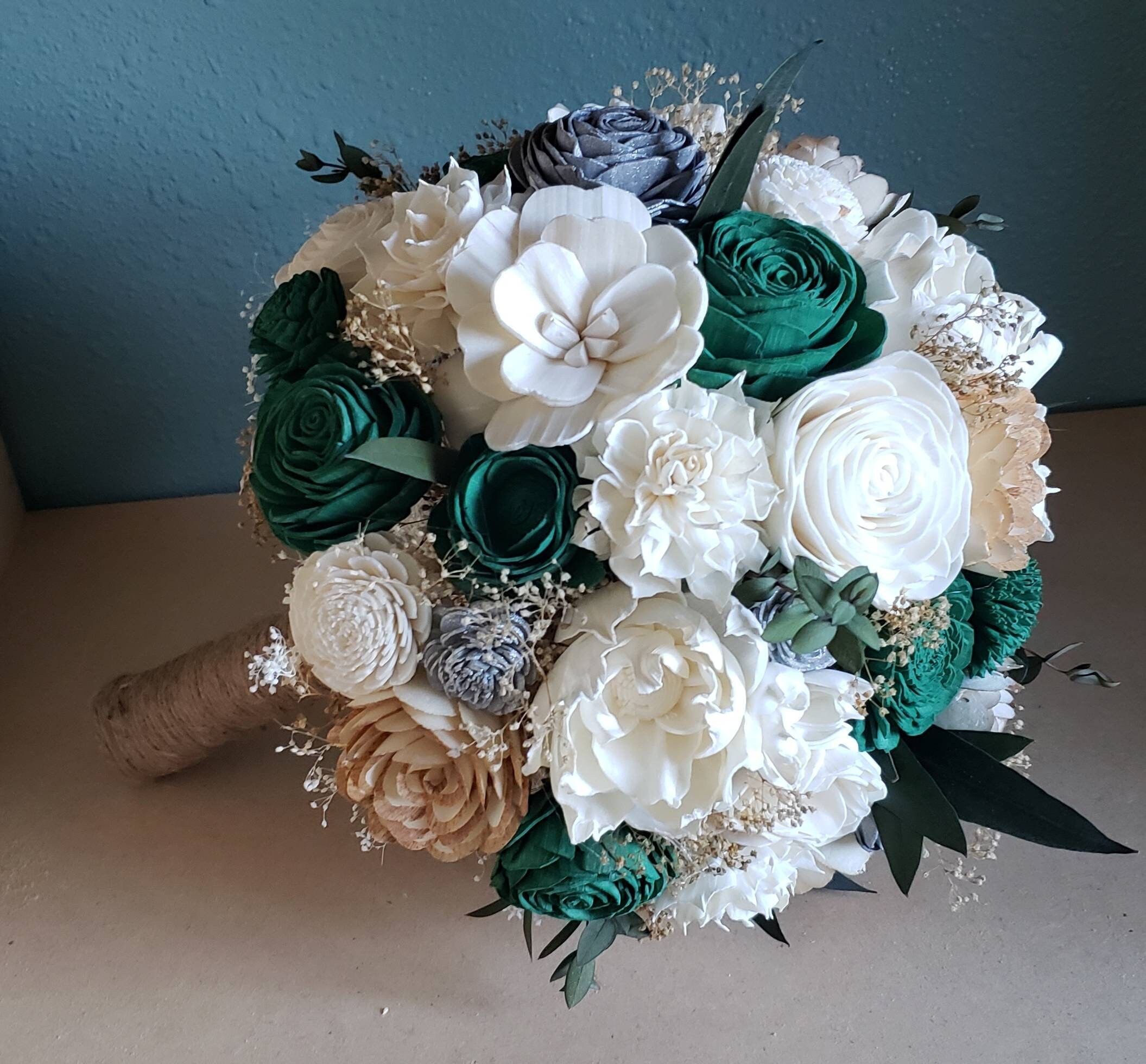 Emerald Green Sola Flower Bouquet Wooden Flower Bouquet Etsy Uk