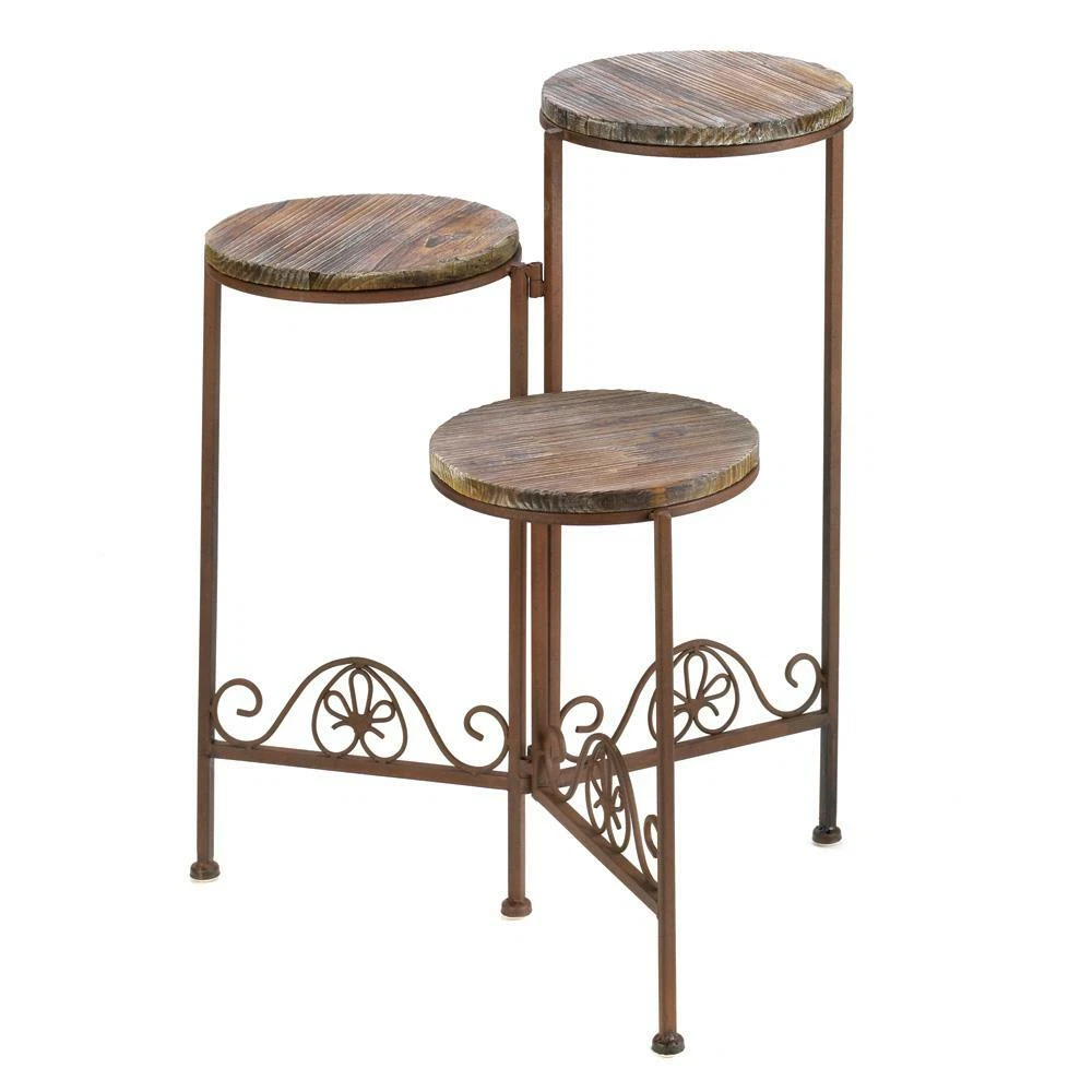 Rustic Triple Planter Stand 23 034 High Wrought Iron Amp Wood Brown Ebay